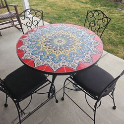 Solid Iron/ Mosaic Tile Patii Table & 4 Chairs. 2 Dark Stained Oak Rockers$200Star, ID