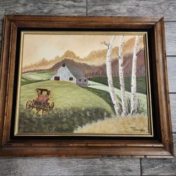Original barn landscape painting in unique vintage wood frame$30Boise, ID