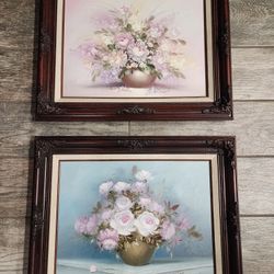 Pair of vintage floral still life oil paintings in ornate wood frames$100Boise, ID