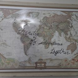 Large Framed World Map Wall Art – Distressed Farmhouse Frame$100Kuna, ID
