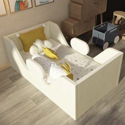 Toddler Bed, Child Bed for Kids with Extra Safty Broad, Standard Crib Size Toddler Bed, Certified Fabric Toddler Beds,Toddler Flood Bed (Light Khaki)$212Boise, ID