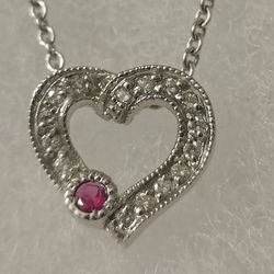 14k White Gold Diamond Ruby Heart Necklace $500Boise, ID