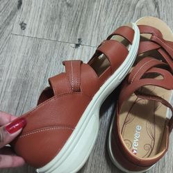 Mauve Color 5" Knee High Boots With Long Lace To Tie Around Leg Or Boot. 21" From Bottom Of Heel To Top. Open Toe Size 10$40Nampa, ID