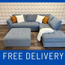 (FREE DELIVERY!) (LIKE NEW) (CHF) Stunning Light Blue Tufted Family Sized Sectional with Ottoman$1,400Nampa, ID