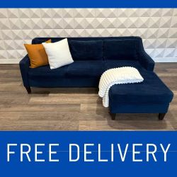 (FREE DELIVERY!) (WEST ELM) Stunning Blue Velvet 87in Paidge Sectional with Movable Chaise$975Nampa, ID
