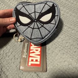 NEW! Loungefly Marvel Spider-Man Mask Denim Heart Shaped Coin Purse Wristlet$22Meridian, ID