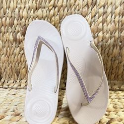 FITFLOP Women's Beige Iqushion Sparkle Rhinestone Flip-Flop Sandals SZ 10$19Chubbuck, ID