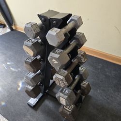 5lb thru 20lb Metal Hex Dumbbell Set With Vertical Rack$130Skokie, IL