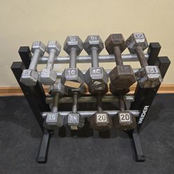 5lb thru 20lb Metal Hex Dumbbell Set With Horizontal Rack$130Skokie, IL