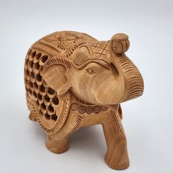 Vintage Hand-Carved Wood Jali Elephant – Detailed Lattice Work Baby Elephant Inside$30Forest Park, IL