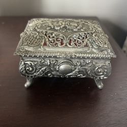 Vintage Jewelry Box Metal With Heavy Hinged Lid Red Velvet Footed Made In Japan$20Ontarioville, IL
