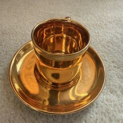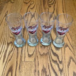 Set of four vintage Pfaltzgraff teal footed glasses with gold banding.$55Willowbrook, IL