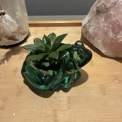 Vintage Indiana Glass Green Frog With Real Live Crassula Succulent Plant$20Worth, IL