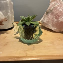 Vintage Green Glass Fish Planter Real Live Succulent Plant$20Worth, IL