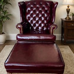 Walter E. Smithe Leather Vinatge Wingback Club Chair with Ottoman Free Delivery$995Des Plaines, IL