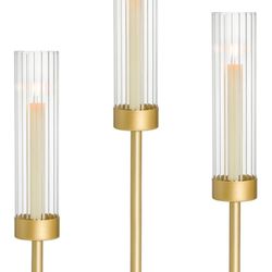 Gold Hurricane Candle Holders Set of 3, Brass Taper Candle Holders for Candlesticks, Elegant Tall Candle Sticks Holder Decor for Table Centerpiece, We$25Palos Park, IL