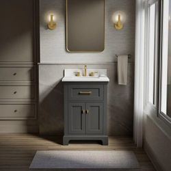 Charlemont 25in. Single Sink Freestanding Ferrous Grey Bath Vanity with White Quartz Top Assembled$500Mount Prospect, IL