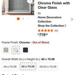 Brand New Dylan 58 1/2 in. - 60 in. W x 76 in. H Sliding Frameless Shower Door in Chrome Finish$500Joliet, IL