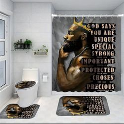 1/4pcs Cool Man Pattern Shower Curtain Set with Waterproof Partition Curtain, Non-slip Bath Rug, and Toilet Accessories - Bathroom Decor Kit with Hook$35Palatine, IL