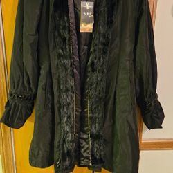 NWT A.B.S. Allen Schwartz XL Coat With Black Jeweled Cuffs, Rabbit Fur Lined Hood, Mink Fur Hood Edge & Front Trim With Detachable Liner. $110Arlington Heights, IL