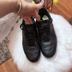 Gucci Black Leather Lace Up Low Top Sneakers $140Summit, IL