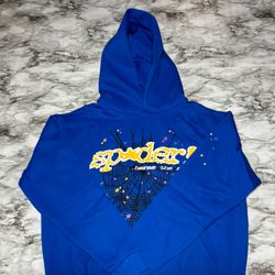 Sp5der Web Hoodie Blue Yellow Rhinestone Logo Size L Large Pullover $80Joliet, IL