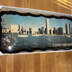 Chicago skyline vintage wall clock. Measures 14”x32”. Keeps perfect time$75Arlington Heights, IL