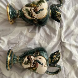 VINTAGE H. BEQUET BELGIUM HAND PAINTED PEACOCK PLANTER / VASE DOUBLE HANDLE$50Chicago, IL