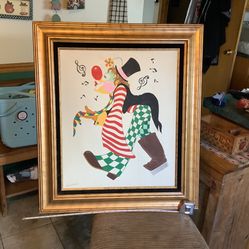Vintage Clown Oil Painting by Burchard, been sitting for a long time beautiful canvas colors framed in a velvet lined triple matted vintage fram. With$55Joliet, IL