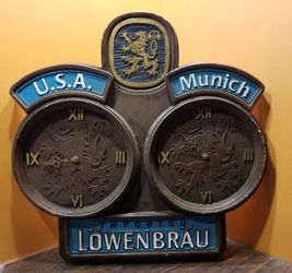 vintage Lowenbrau beer dual clock USA Munich advertisement sign$125Joliet, IL