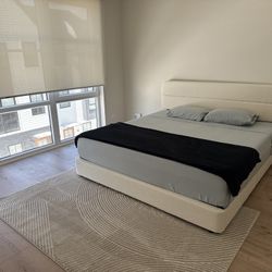 Silver Upholstered King Bed Frame + Matching Storage Bench$600Palatine, IL