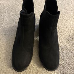 FIONI BLACK SUEDE SIDE ZIP-UP ANKLE BOOTIE HEELS SIZE 6.5$15Clarendon Hills, IL