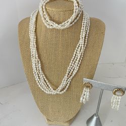 14K Gold Freshwater Rice Pearl Set (necklace, Earrings, Bracelet)$239Plainfield, IL