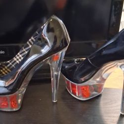 STILETTOS BLK PATENT LEATHER ROSES sz9$77Chicago, IL