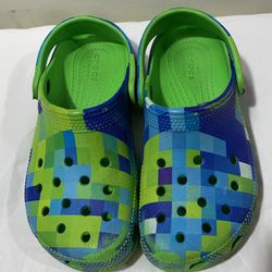 Classic Crocs girls size 13 pixelated digital block pattern in shades of green, blue, and purple shoes$10Stickney, IL