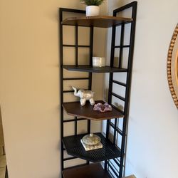 Tall 77” dark wood and metal corner shelf$80Willow Springs, IL