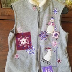 Croft & Barrow Women's Sleeveless Fleece Vest, size PM Gray w/ Winter Theme