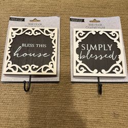New lot of 2 decorative Wall Hook w/phrase "Bless This House"/ “SIMPLY blessed”$5Homer Glen, IL