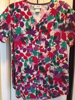Scrub top with snap down front and back slimming detail, size small$6Palatine, IL