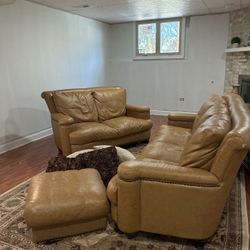 Tan Leather Sofa with Loveseat and Ottoman & Pillows $270Oak Lawn, IL