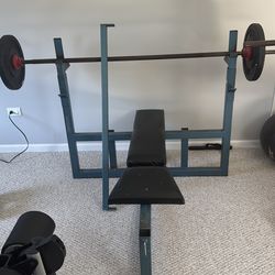 Hunk incline bench with bar and 50 lbs York weights$100St. Charles, IL