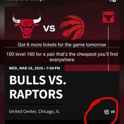 Bulls Tickets Against Raptors$110Romeoville, IL