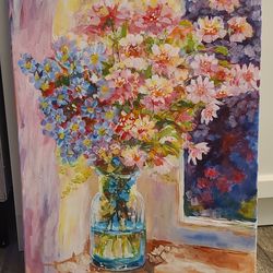 Blue and pink flowers in clear vase$175Hoffman Estates, IL