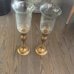 Brass And Cut Glass/ Crystal Hurricane Candles Set Of 2 $37Bolingbrook, IL