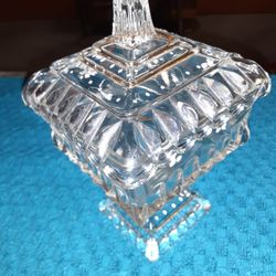 Vintage Clear glass Wedding Box, Square pedestal Covered Dish $18Dundee Township, IL