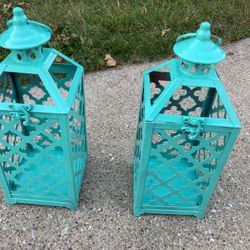 Two matching teal lanterns $40Hinsdale, IL