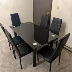 Modern Black Glass Dining Table Set with 6 Chairs - Like New$250Homer Glen, IL