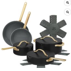 BRAND NEW - 12-Piece Beautiful by Drew Barrymore Ceramic Nonstick Cookware Set, Pots and Pans with Strainer Lids- Black Sesame$75Park Ridge, IL