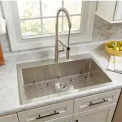 allen + roth Alden Drop-in or undermount 33-in x 22-in Stainless steel Single bowl 18 -Gauge Kitchen Sink All-in-One Kit