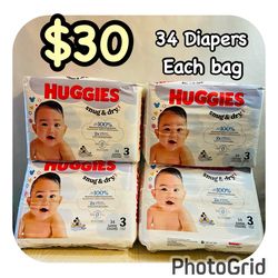 Huggies Snug & Dry Baby Diapers, Size 3 (16-28 lbs), 34 diapers each bag, $30 for all$30Waukegan, IL